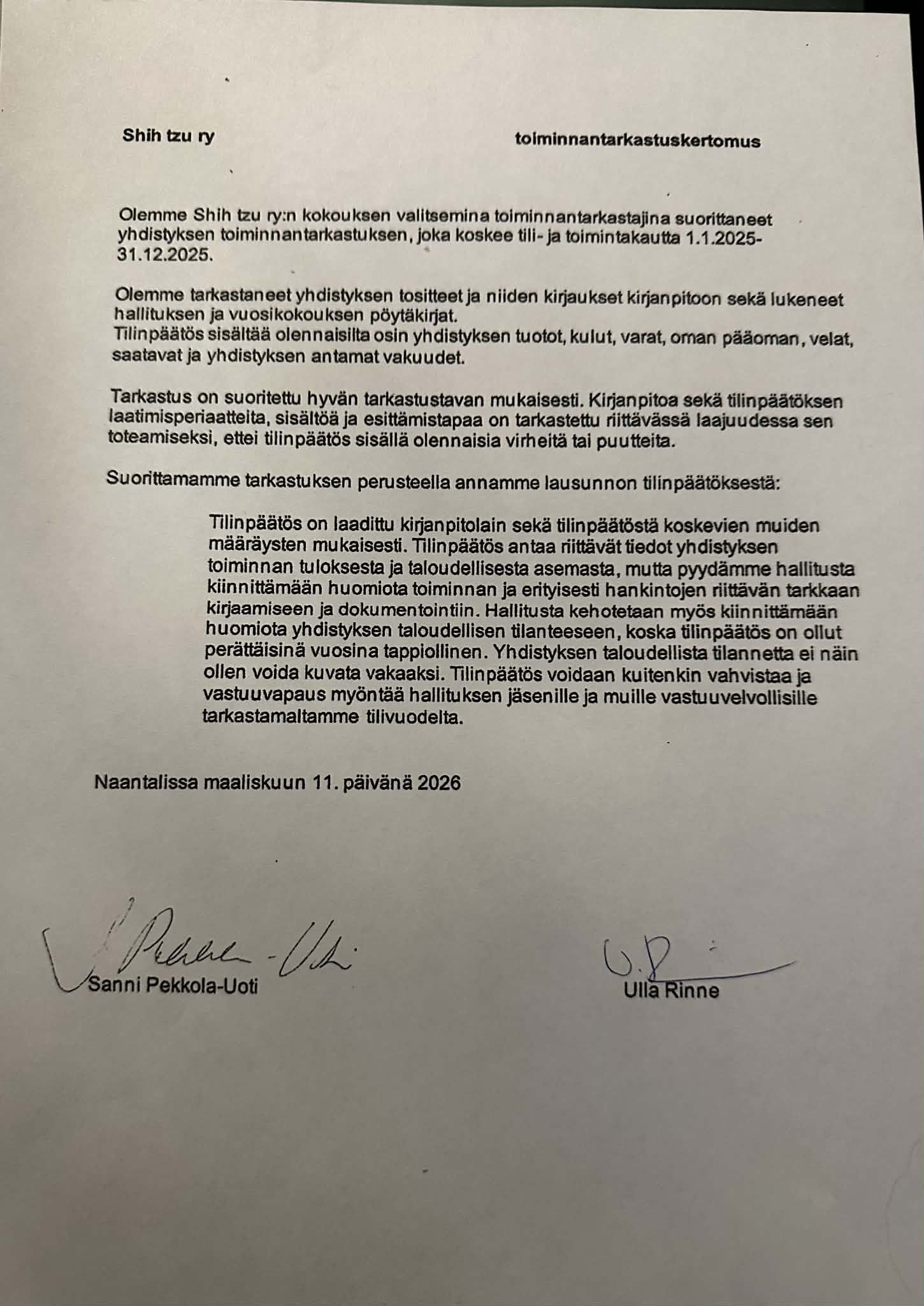 Shih Tzu r.y. Järjestäytymiskokous 15.3.2026