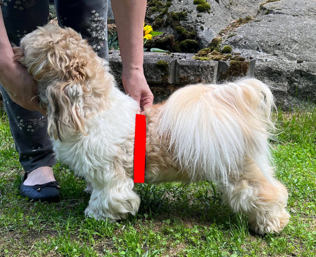 Katso kuva linkistä tästä ja vertaa oman koirasi poimuun ja sieraimiin. Poimu on nenän päällä.
